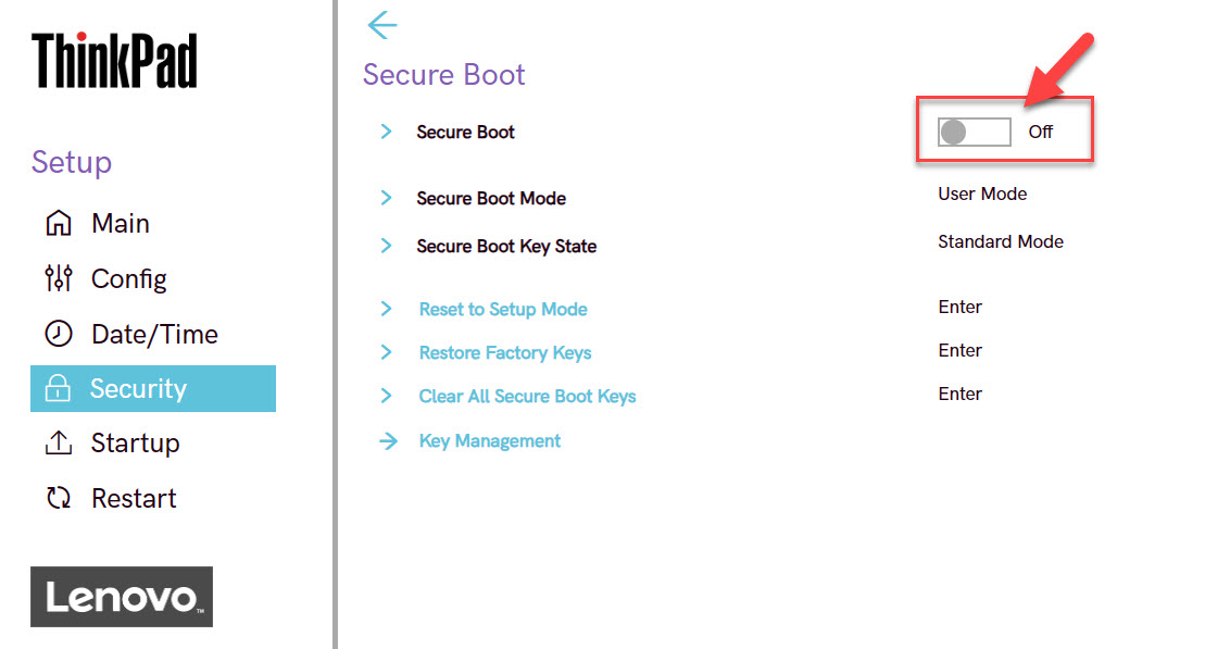 Secure Boot deaktivieren: Deaktivieren Sie die Option "